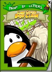 Tommorow there will be a new book in the Book Room. It's called Paint By Letters: Lime Green Dojo Clean. It's a game where you fill in words as they appear in the book. Sometimes you will get to choose words, and the penguin in the story will be the same color as your penguin. And when you read the book, look at the pictures carefully.